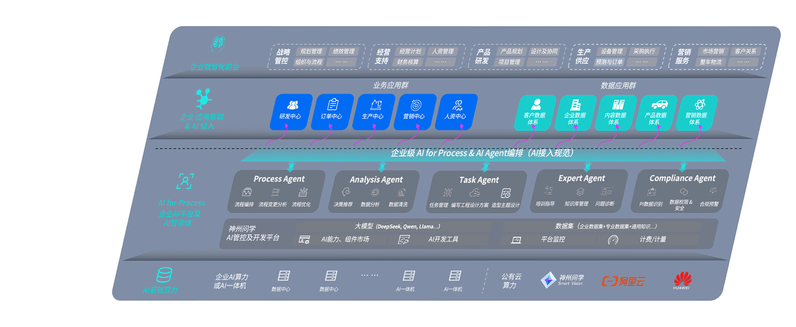 端到端的一站式AI工作空间深度融合了从企业战略规划到日常经营的全流程业务板块,,定向解决车企内部领域多、、、、部门多、、、、链条长、、、场景碎片化等难题,,支持车企快速构建以AI为核心的生产力写作体系,,,,实现任务执行与AI能力的无缝集成与交互