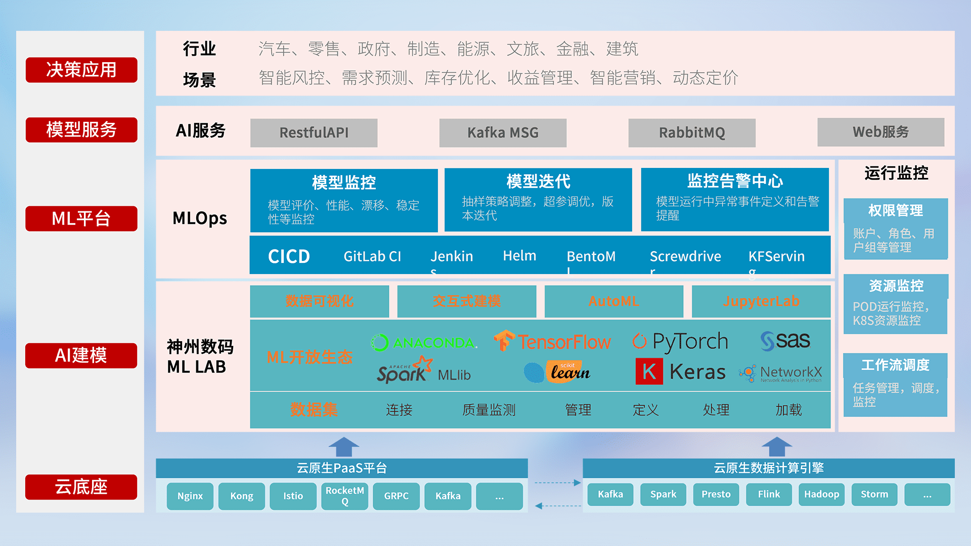 数据+模型双引擎驱动,,面向智能服务场景,,,,快速灵活利用AI技术,,,,支持业务决策,,,,助力企业智能化转型破局。。。。